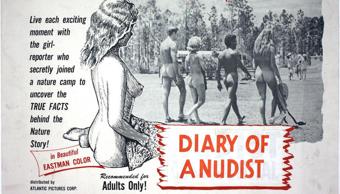 Nudity didn’t disappear from movies, though. Nudity remained a staple of “stag reels” which were shot on the new 16mm and 8mm film technologies and distributed in back rooms and street corners. While these were never publicly exhibited or advertised traditionally, “stag reels” are the direct descendants of today’s pornographic video clip industry. Publicly exhibited nudity on film was harder to come by after the Hays Code, but glimpses of flesh were available in ultra-low budget exploitation movies and documentaries, which used the pretense of education to show nudity. Movies as early as 1937’s Nudist Land and as late as 1961’s Diary of a Nudist straddled a hazy line between documentary nudity and exploitative fiction.