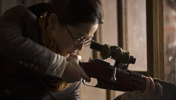 Driving the action are the five hired assassins: “Big Gun” and Hwang Deok-sam, sprung from a Japanese prison, are hired to accompany An Ok-yoon, a sniper in the Korean Independence Army known for her stellar sharp-shooting abilities, hampered only by her need for glasses, and the two professional hitmen, Hawaii Pistol and his mustachioed sidekick Pomade, ride in on a tandem motorcycle. All five are especially talented with guns, hand-to-hand combat, and deceit, and all are compulsively watchable in action.