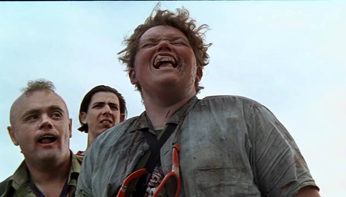 Body Melt includes all the hallmarks of an Australian schlock-fest from the 80s or 90s, following on the heels of the ozploitation explosion of the 70s. The bizarre interlude at the former scientist’s hovel might seem out of place to the casual viewer, but to the Aussie horror movie connoisseur, it’s to be expected – the outback often serves as the oh-so-fertile ground for raunchy and vaguely-offensive humor. Is there a connection between the vitamins and the scientist’s apparent proclivity for incest? Does Vimuville have anything to do with his daughter, Slab, bludgeoning one of the teenager’s genitals and chewing on his neck? Or what about the old woman “Mack,” parked in a rotting armchair in the hidden back-living-room, watching hardcore porn? Who cares, when it gives you such priceless, nasty nuggets of tasteless humor?